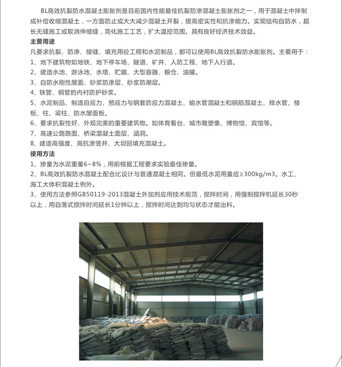 BL高效抗裂防水膨胀剂产品介绍: