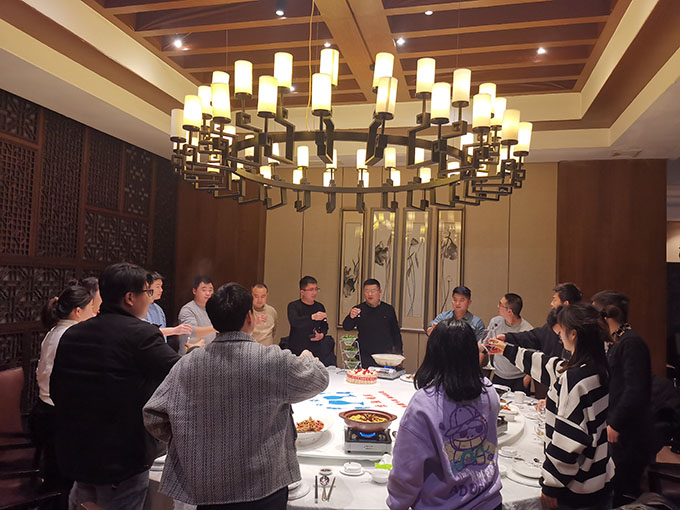 晚上一起聚餐,菜品丰盛,大家一起度过了愉快的一天,并且制定好了新的一年的工作目标,来年再创佳绩,一年更比一年好。