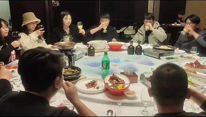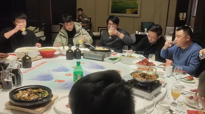 2023年2月11日下午公司年会结束后,晚上一起聚餐,菜品丰盛,大家一起度过了愉快的一天。